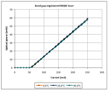 The net effect is a MQW laser whose optical output power is essentially temperature independent over a wide temperature range.